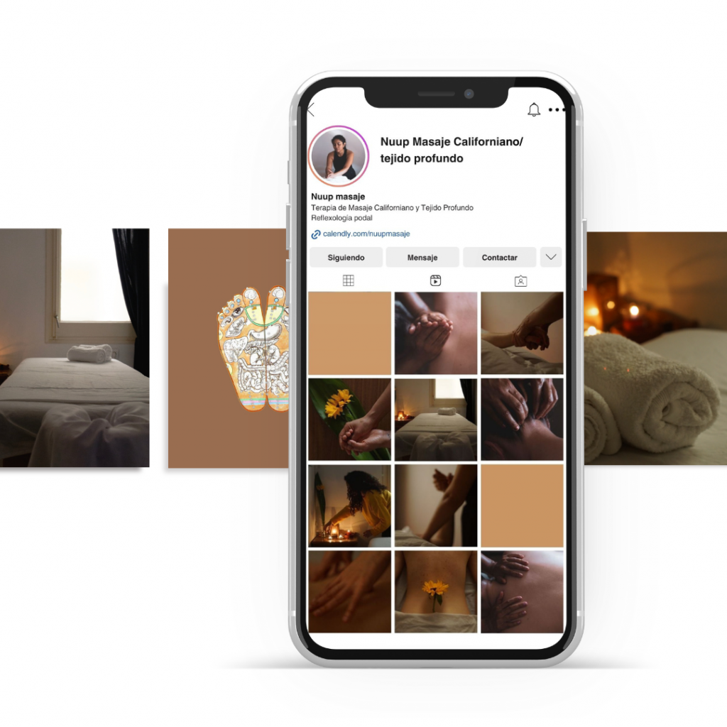 Para Laura y sus masajes terapéuticos de Nuup Masajes hicimos sesión de fotos en dos ocasiones ya que necesitaba promocionar sus servicios. También diseñamos el feed de su Instagram de una manera atractiva y coherente con su estilo y le echamos una mano con las redes sociales. Además, la ayudamos a organizarse internamente, así como le digitalizamos y optimizamos sus procesos de reserva y de comunicación con los pacientes.