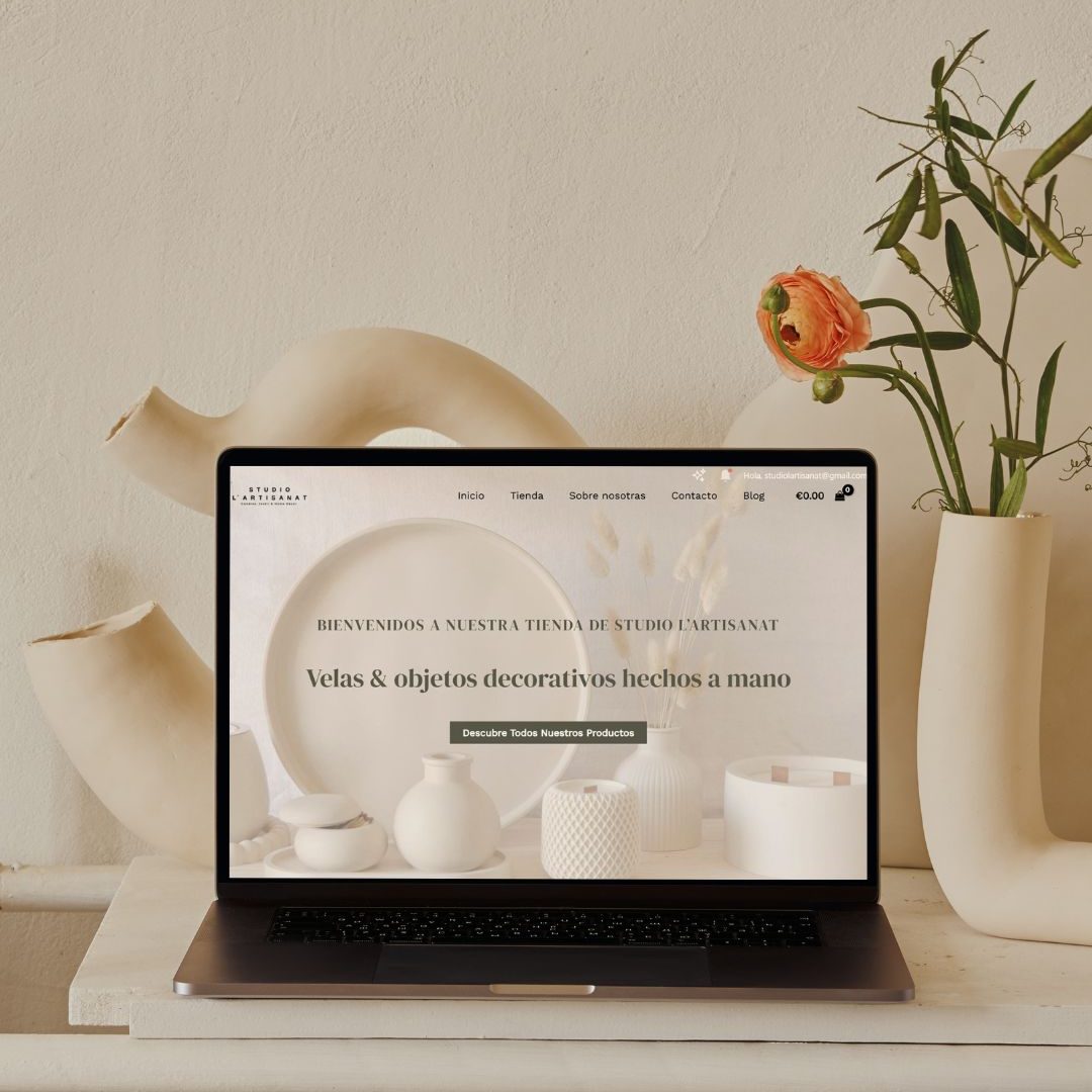 En «Studio L’Artisanat», el arte y la sostenibilidad van de la mano. Diseñamos su página web responsive y la tienda en Etsy para exhibir sus exclusivas velas veganas y objetos de decoración artesanal. Con un enfoque en la producción limitada, logramos transmitir su apuesta por una estética artesanal y minimalista, alineada con el consumo consciente.